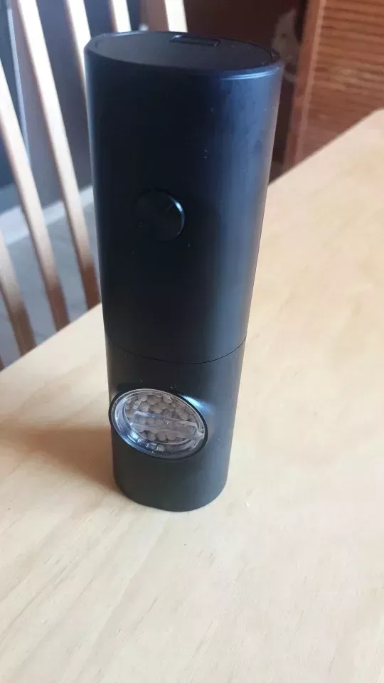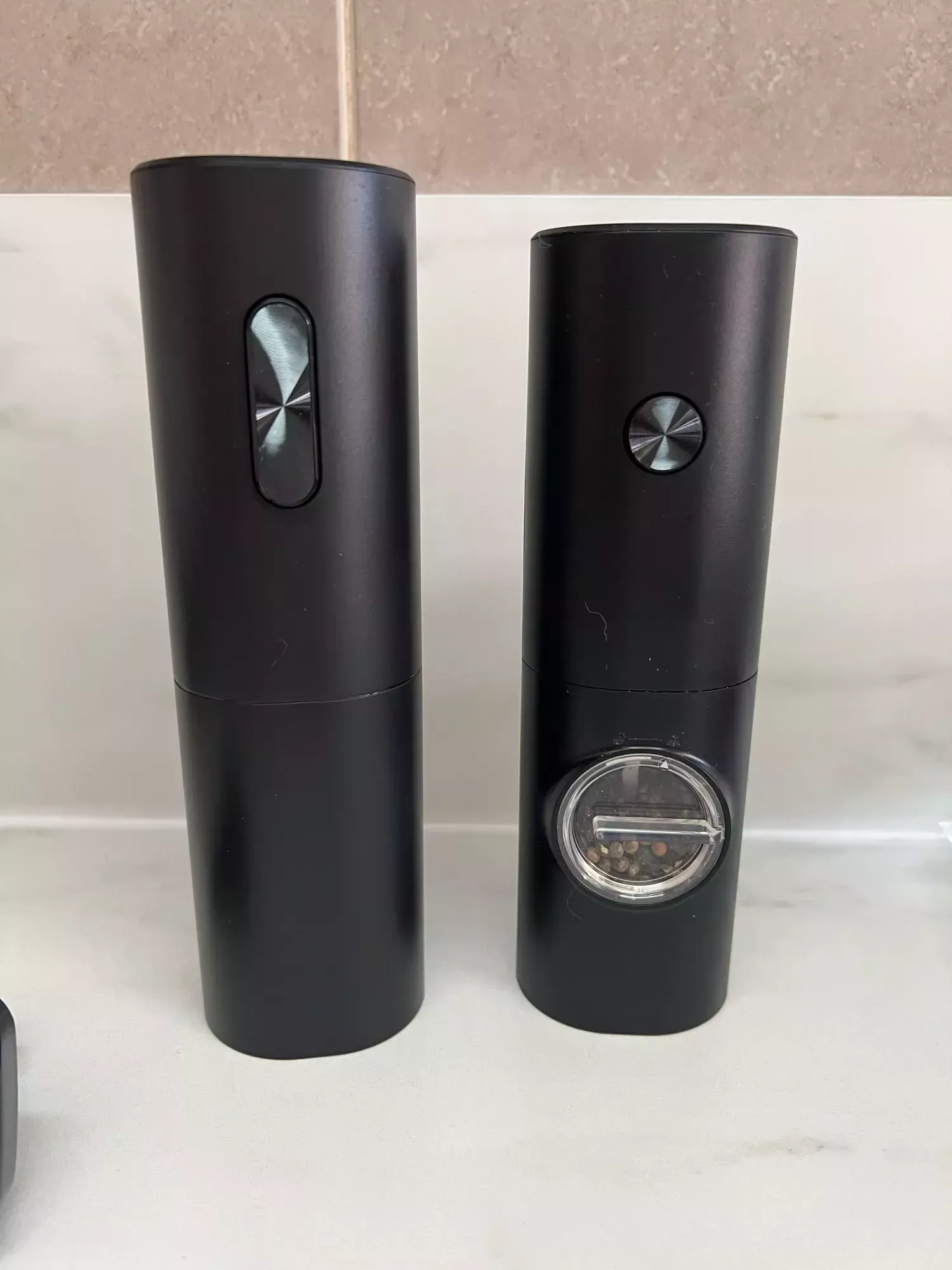 This salt grinder is lovely. Just one press of the button and your meal is seasoned. It even has an adjustment underneath to switch between coarse and fine grain.