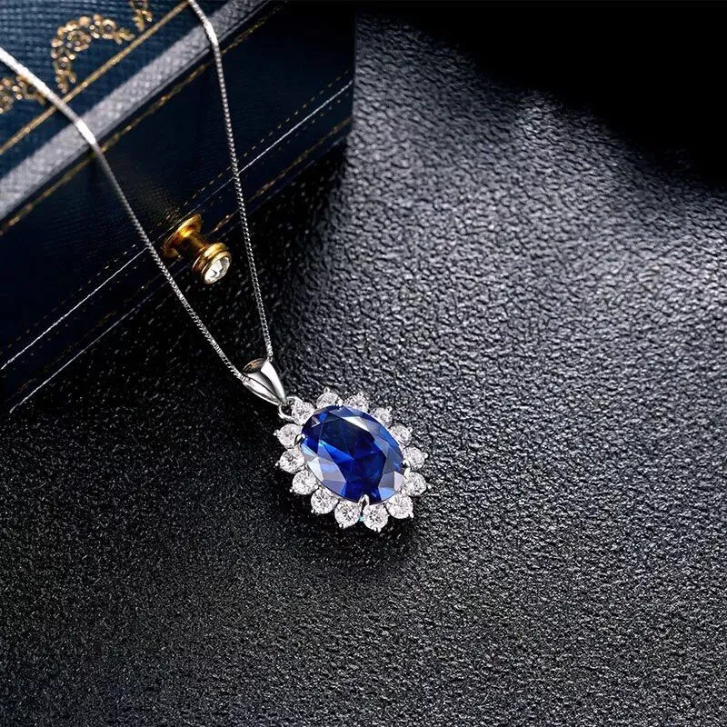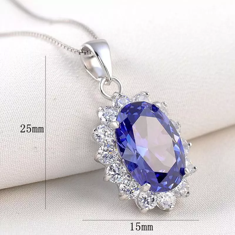 Our pendant necklace features a magnificent 10*14mm oval-cut main stone, weighing 6.4ct, meticulously crafted from high-quality created Tanzanite. The solid 925 sterling silver setting, stamped for authenticity, enhances the gemstone’s luminous hues. The pendant is accompanied by an 18-inch box chain, ensuring durability and lasting shine.
