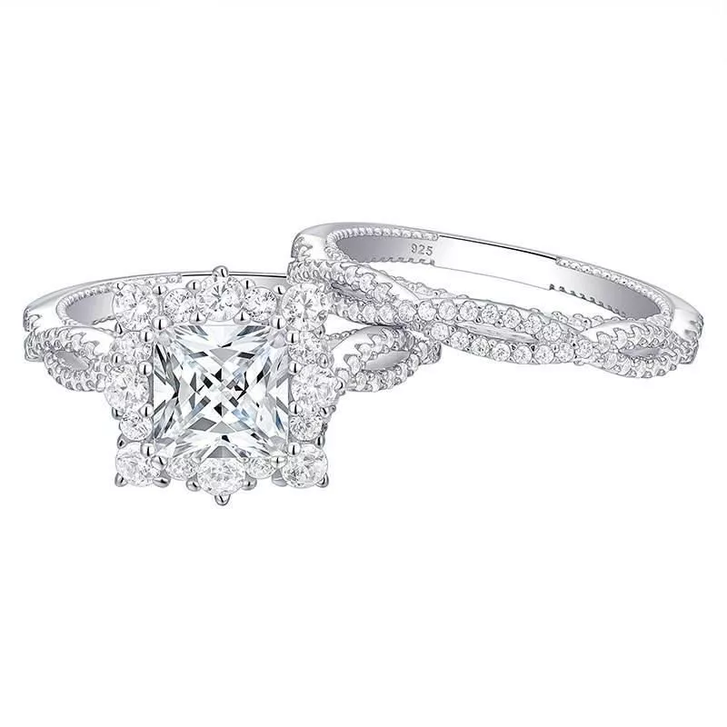 Indulge in the timeless allure of our Elegant 925 Sterling Silver Engagement Ring Wedding Band Bridal Set for Women – the epitome of grace and sophistication. This enchanting set, featuring a Halo Princess Cut 5A Cubic Zircon, is meticulously crafted in solid 925 sterling silver, promising enduring beauty for a lifetime.