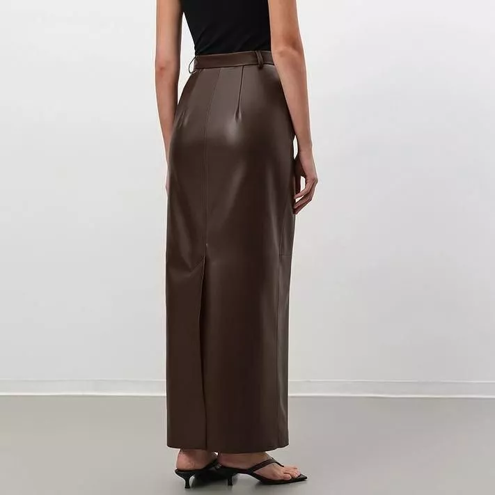 Embrace the perfect blend of style and comfort with our Vintage Brown Faux Leather Skirt, designed for the modern woman. Crafted with meticulous attention to detail, this ankle-length skirt is a testament to sophistication and versatility, making it an essential addition to your autumn/winter wardrobe.