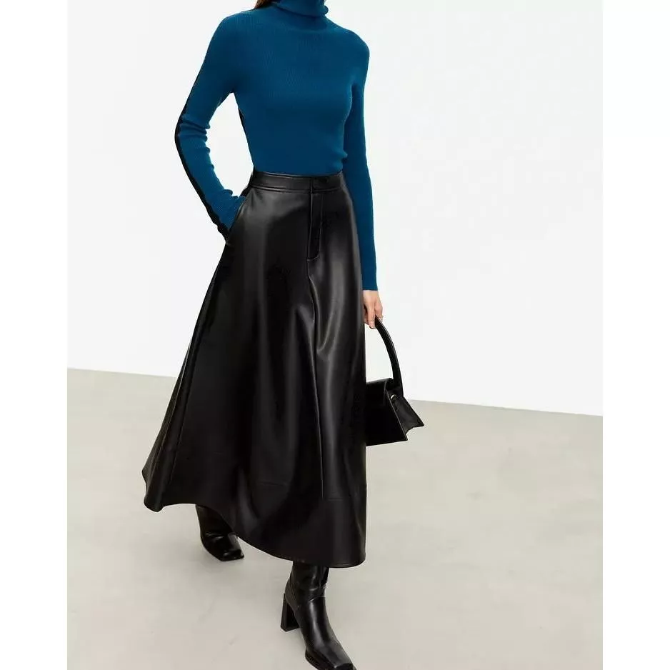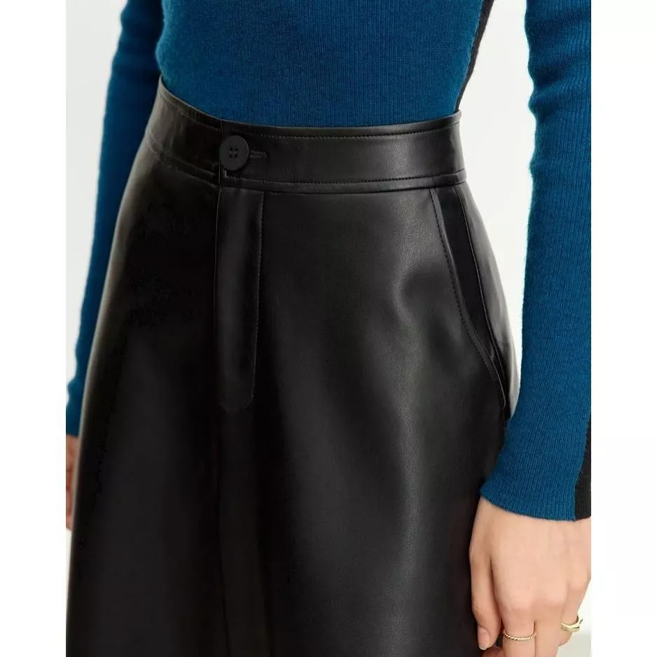 What sets this skirt apart is its blend of simplicity and elegance. The minimalist design is elevated with a touch of classic fashion, making it a timeless piece in your wardrobe. The non-stretch viscose leather offers both comfort and durability, ensuring that the skirt looks great wear after wear. Its loose fit caters to a range of body types, allowing for freedom of movement and a relaxed feel.