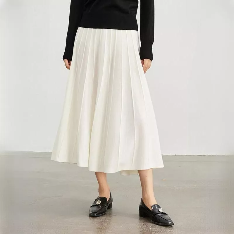 Introducing our latest fashion statement for the cooler months: a versatile, mid-calf pleated skirt that perfectly blends comfort with elegance. This piece is not just a skirt, it’s a winter wardrobe essential for the modern woman. Whether you’re heading to the office or out for a casual day, this skirt has you covered.