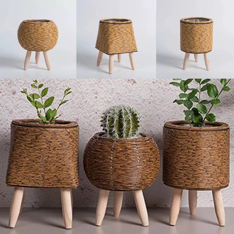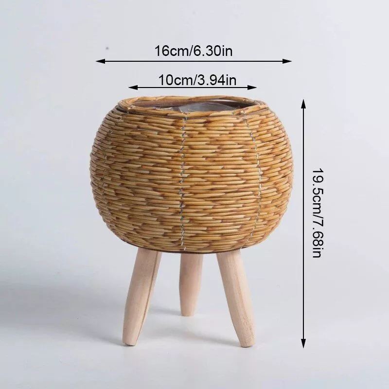 Introducing our Nordic-Style Woven Storage Basket with Wooden Legs, a perfect blend of functionality and style. This faux rattan flower stand, with its high-foot, free-standing design, brings a touch of Nordic simplicity to your living space. It’s more than just a plant pot holder; it’s a statement piece that enhances the beauty of your favorite plants while organizing your space with elegance.
