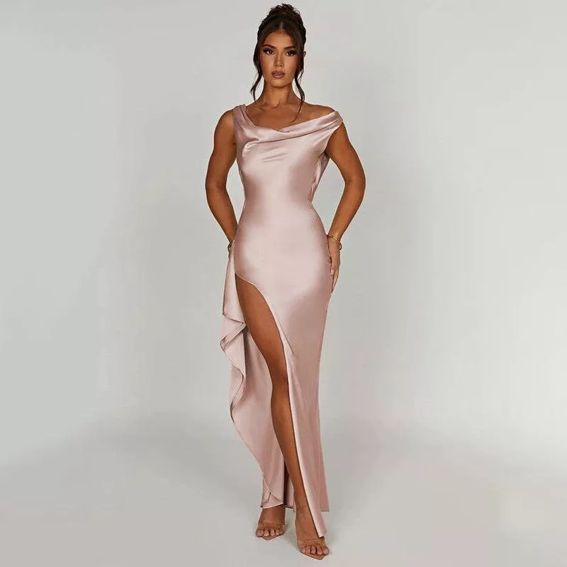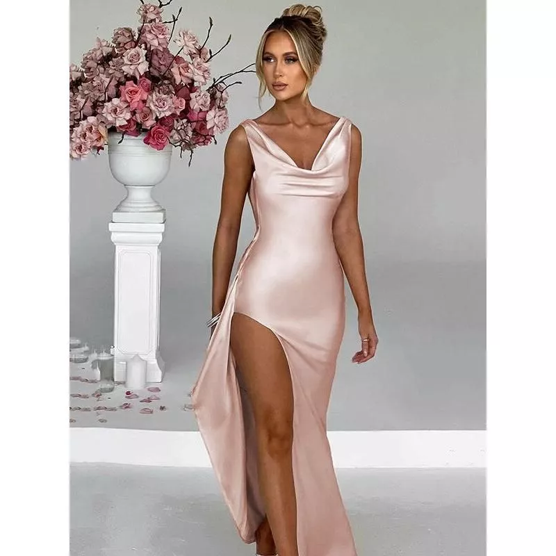 Embrace the blend of sophistication and allure with our Elegant Satin Backless Split Maxi Dress. Tailored to accentuate your silhouette, this V-neck sleeveless evening gown is a masterpiece of design and style, perfect for those who seek to stand out in any setting. Whether it’s a high-profile party, a romantic evening, or an exclusive club event, this dress ensures you make a memorable entrance.