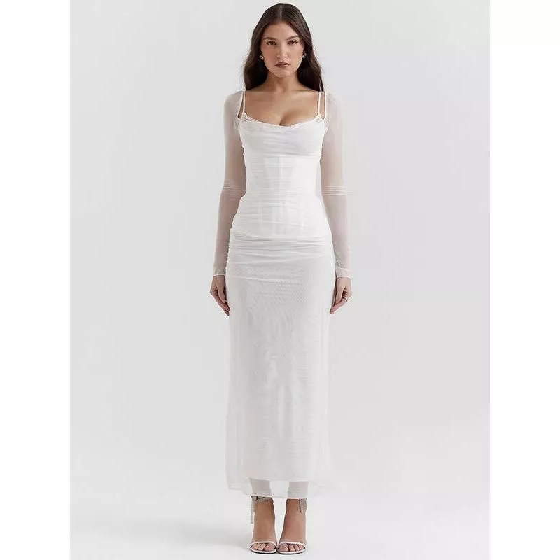 Step into the world of high fashion with our Elegant Sheer Long Sleeve Maxi Dress, a stunning piece that combines sophistication with a touch of daring allure. Perfect for middle-aged women who cherish style and comfort, this dress is a must-have for your wardrobe. Its sheer organza fabric and full-length design create an enchanting silhouette, making it an ideal choice for evening parties, club events, or any special occasion where making an unforgettable impression is key.