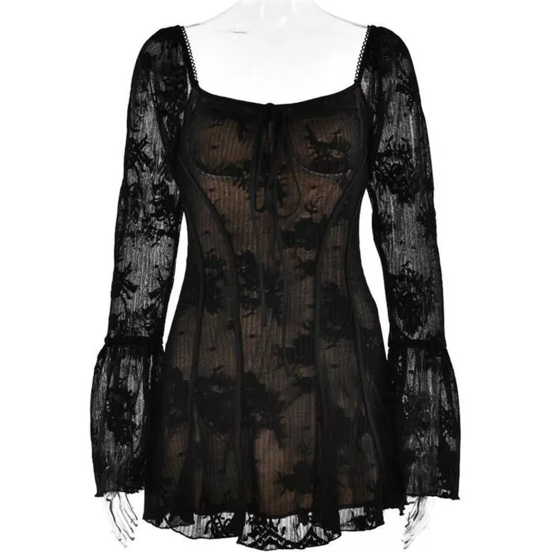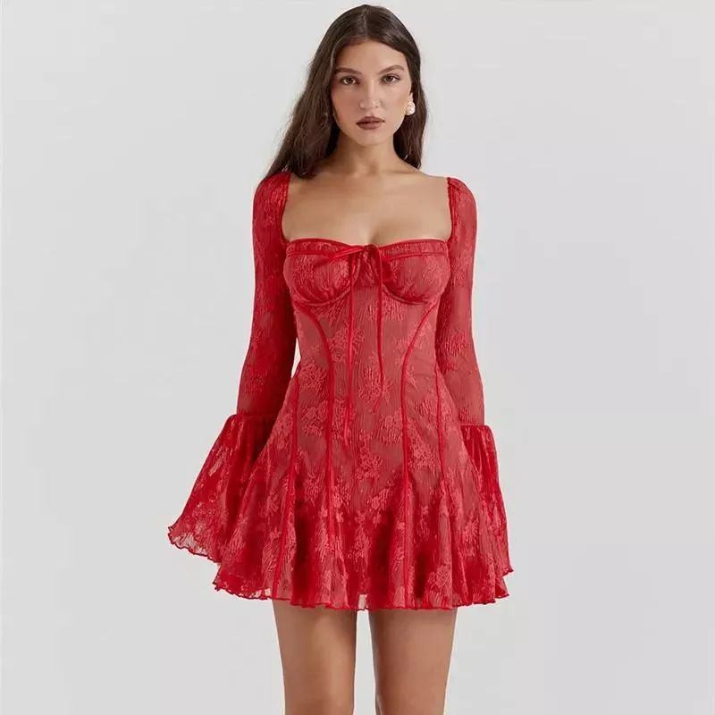 This stunning dress boasts a captivating square neckline that adds a touch of sophistication to your look, while the backless design injects an element of allure. The long flare sleeves provide an elegant silhouette, and the A-line cut ensures a flattering fit for all body types. The above-knee length makes it a daring yet tasteful choice for any party or club event.