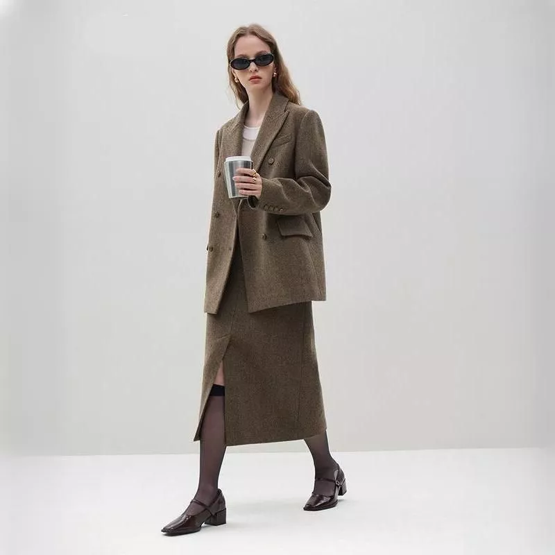Our wool blazer skirt set shines in professional settings and formal events. It’s your go-to choice for office meetings, business conferences, or elegant evening gatherings during the winter season. Its versatile design allows for easy pairing with various accessories, making it a staple piece for any fashion-conscious woman’s wardrobe.