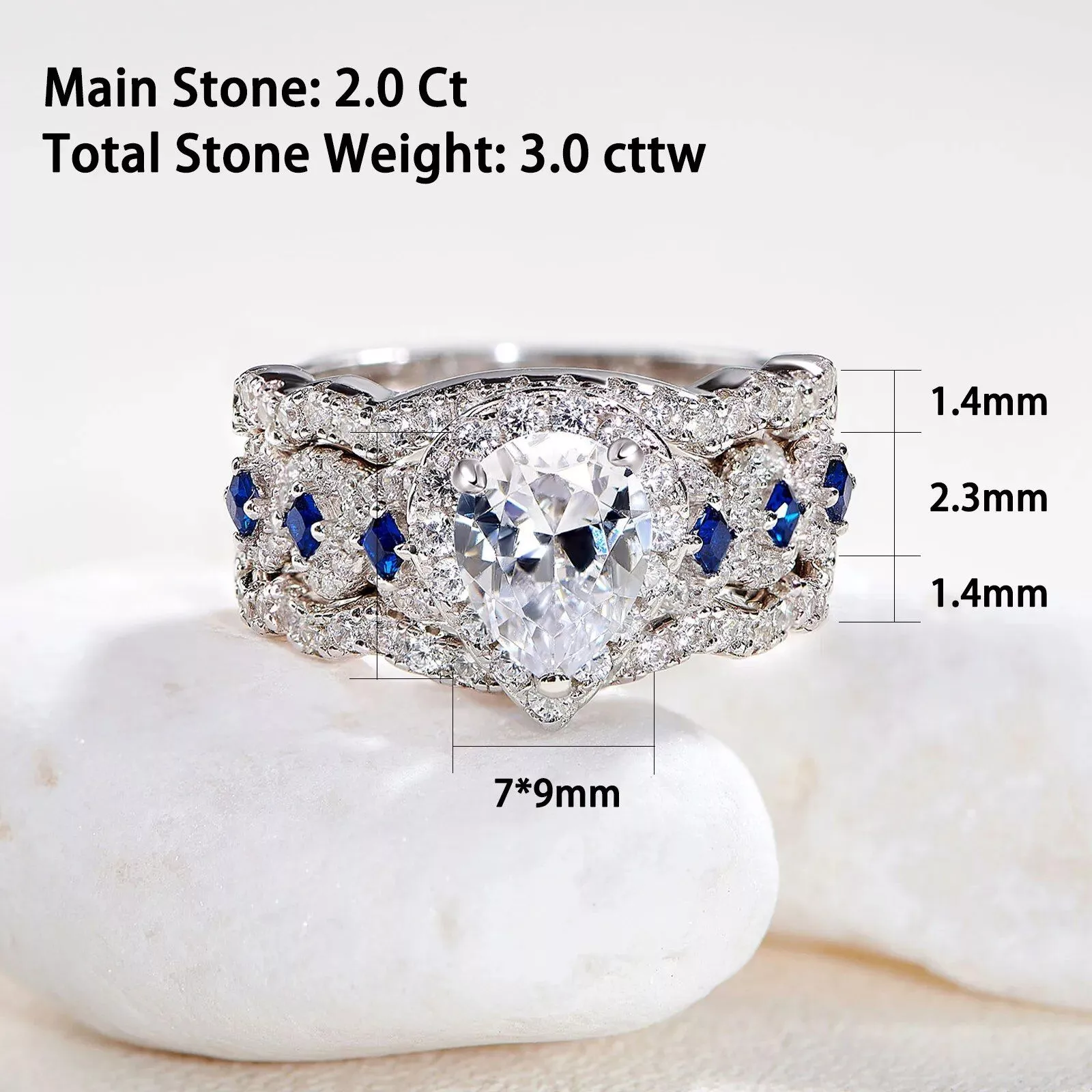Embrace the beauty of everlasting love with our 3-Piece Pear Cut Engagement Ring Set. Order now and make your moments unforgettable!