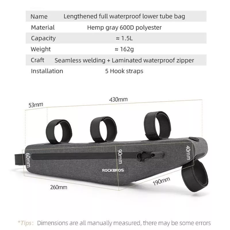 Our Extended Waterproof Cycling Front Tube Bag is more than just a storage solution; it’s a game-changer for cyclists. The 43cm lengthened design accommodates extended portable air pumps, and the scratch-resistant material ensures longevity. Its real waterproof design, featuring seamless welding and laminated zippers, keeps your valuables dry in all weather conditions. Cleaning is a breeze, and its design guarantees it won’t interfere with your riding, ensuring safety and comfort.