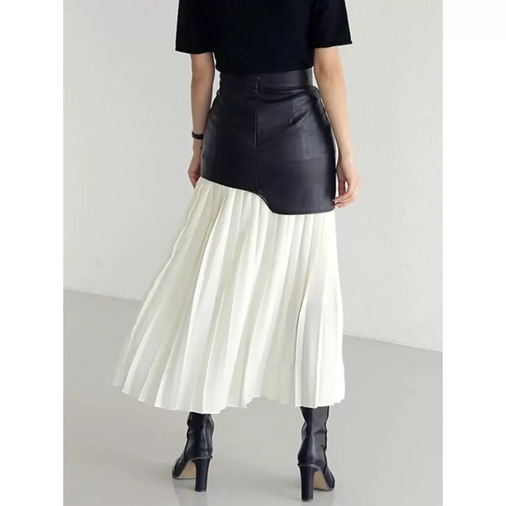Our Long Leather Patchwork Pleated Skirt is not just a piece of clothing; it’s a statement. Here’s what sets it apart: