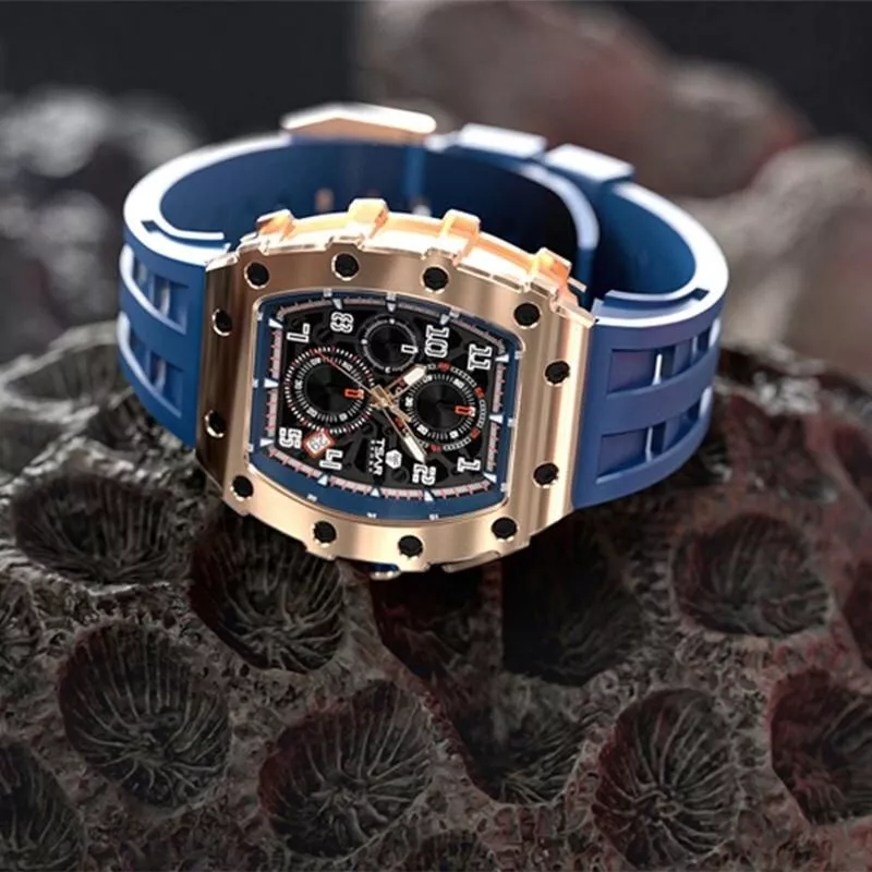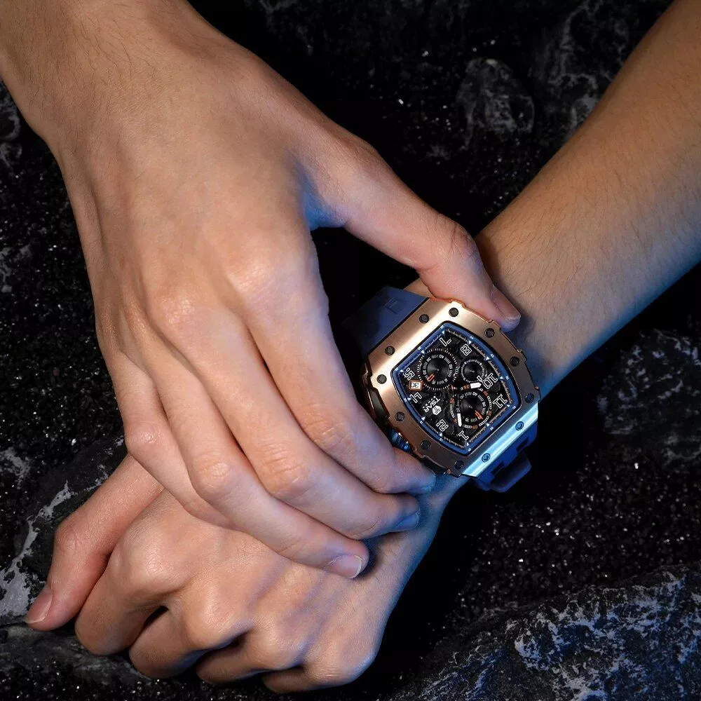 Elevate your wrist game with our latest offering – a watch that embodies both luxury and rugged functionality. Its masculine, mechanical-inspired design is not just a timepiece; it’s a statement. Featuring an oversized case and bold, eye-catching details, this watch is perfect for the modern man who appreciates style without sacrificing durability.