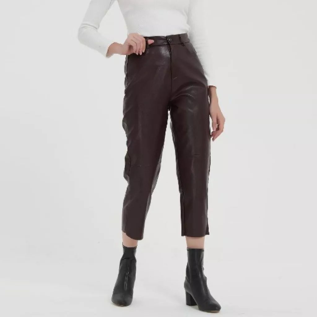Our Fashion Faux Leather Pants stand out for their impeccable craftsmanship and attention to detail. The faux leather material not only looks luxurious but also aligns with ethical fashion choices. The combination of a high waist and ankle-length cut creates a silhouette that exudes confidence and modernity.