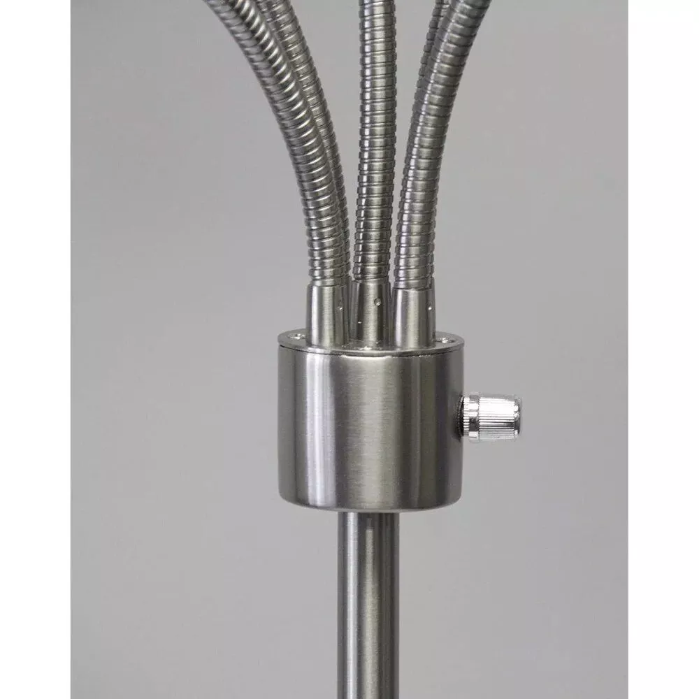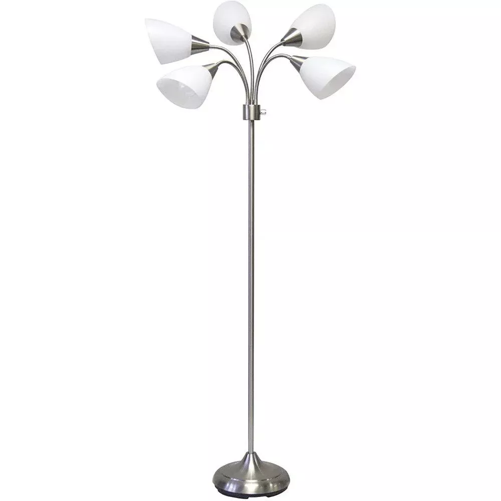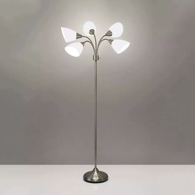 What sets this lamp apart is its unique blend of flexibility and style. The ability to position each of the five shades independently allows for unparalleled control over your lighting needs. Whether you need bright light for work or a softer glow for relaxation, this lamp can do it all. The modern brushed steel finish and elegant frosted shades ensure that this lamp isn’t just functional, but a stylish addition to your decor.