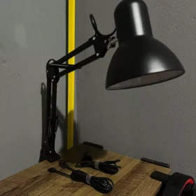 Our Flexible Swing Arm Desk Lamp is not just about illumination; it’s about enhancing your work efficiency and comfort. The modern swing arm design allows you to direct light exactly where you need it, reducing eye strain and increasing productivity. The robust metal build and sleek black finish offer both durability and style, making it a practical yet fashionable addition to any setting.