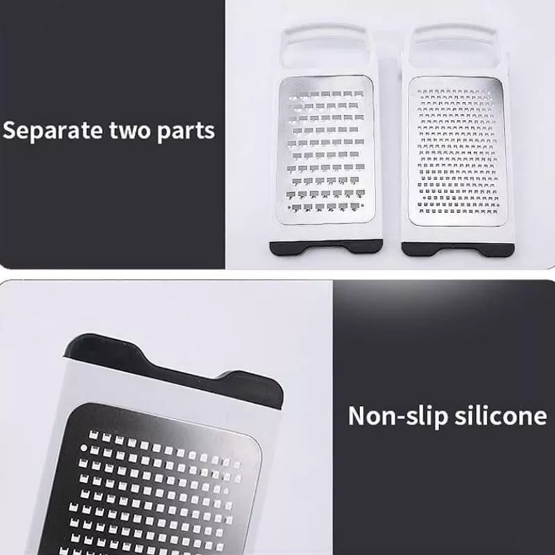 Our product stands out with its unique detachable and foldable design, allowing for easy storage and cleaning. Unlike traditional graters, this 2-in-1 tool saves valuable kitchen space and reduces clutter. Crafted with high-quality stainless steel, it ensures durability and longevity, making it an essential for every kitchen.