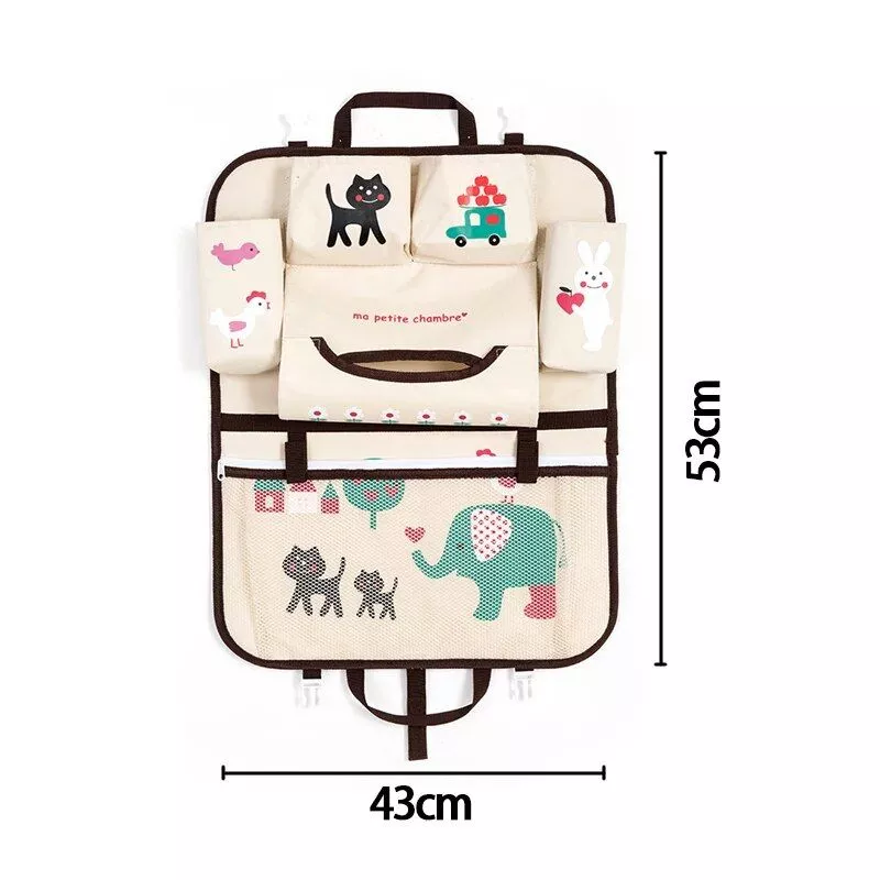 With its dimensions at a spacious 53*43cm (20.87*16.93 inch), it offers ample space to store toys, snacks, drinks, and essential baby products. Made with durable Oxford Cloth, you can be assured of its quality and longevity, making it a reliable companion for countless trips and adventures. Not only does it offer organization, but it also acts as a shield, protecting your car seats from potential scratches and marks.