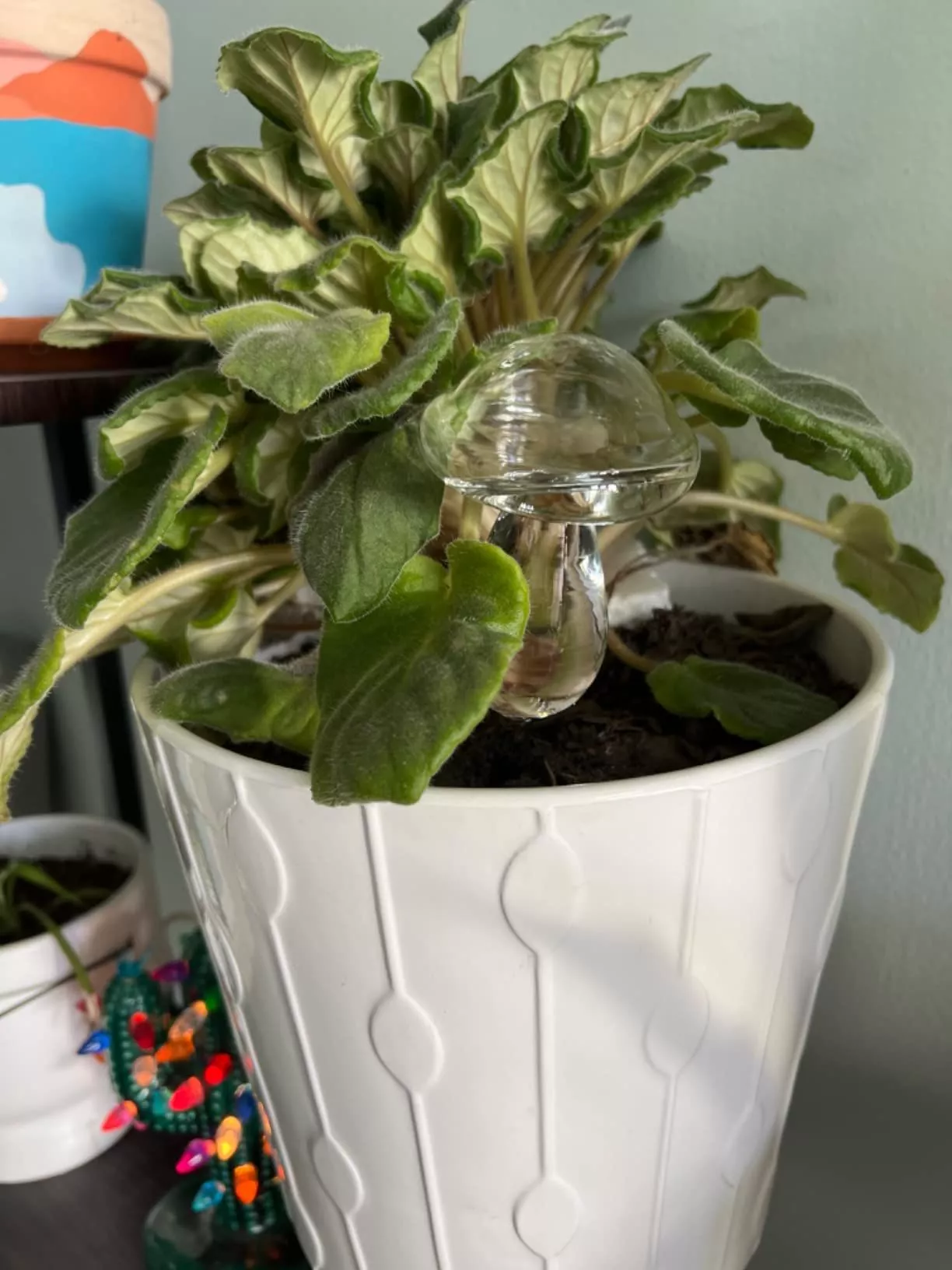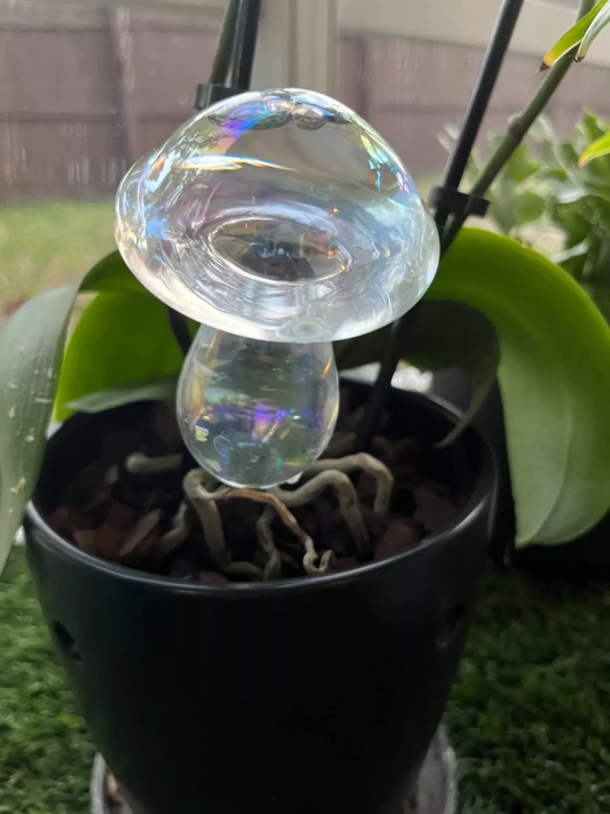 As a houseplant enthusiast, I find these self-watering mushroom globes to be stunning. They have an iridescent sheen and look adorable in my plants.