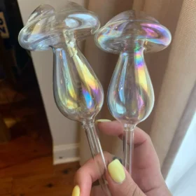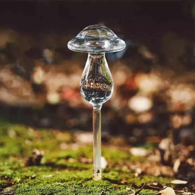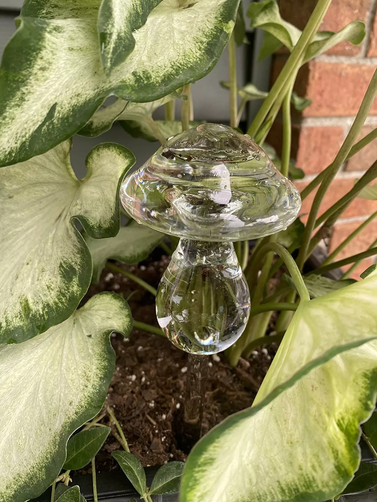 These glass mushroom designs are adorable. They’re easy to use and look great next to my plants.