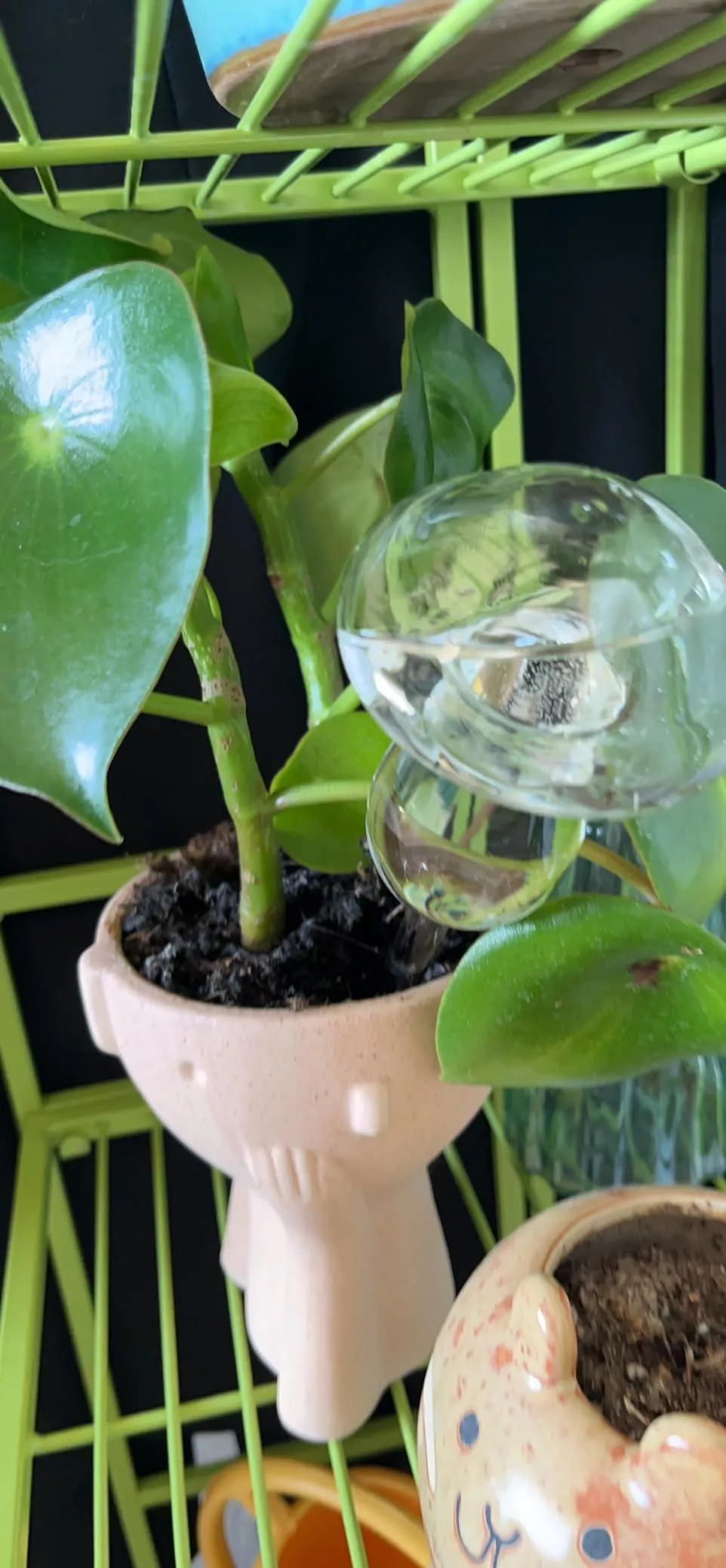 It’s super cute and quite sturdy for glass. It needs refilling every 2-3 days, but it’s a great aid in plant maintenance.