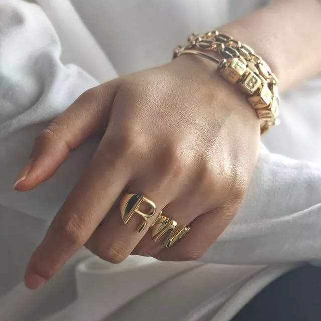 Wear it as a wedding band or to accentuate your everyday look – the Gold Initials Opening Ring is versatile and complements any style. Its copper base ensures durability, promising a timeless piece that will withstand the test of time.