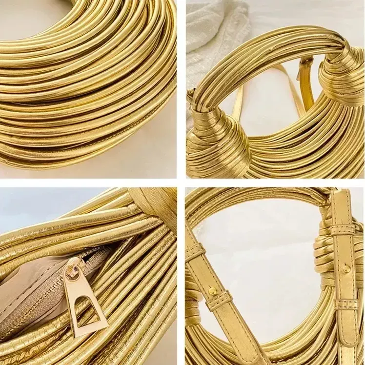 Introducing the epitome of sophistication and style – our Golden Noodle Knot Evening Clutch. This luxury designer purse is not just an accessory; it’s a statement piece that elevates your evening look to new heights of glamour. With its unique golden noodle knot design, this dinner party clutch bag seamlessly blends modern chic with timeless elegance, ensuring you are the center of attention at every event.