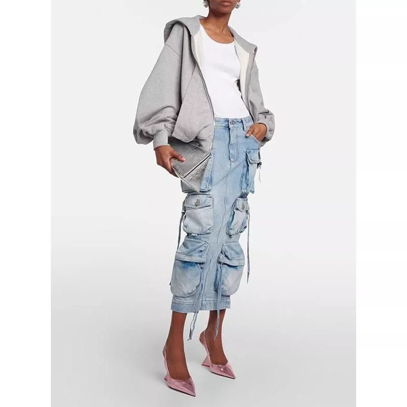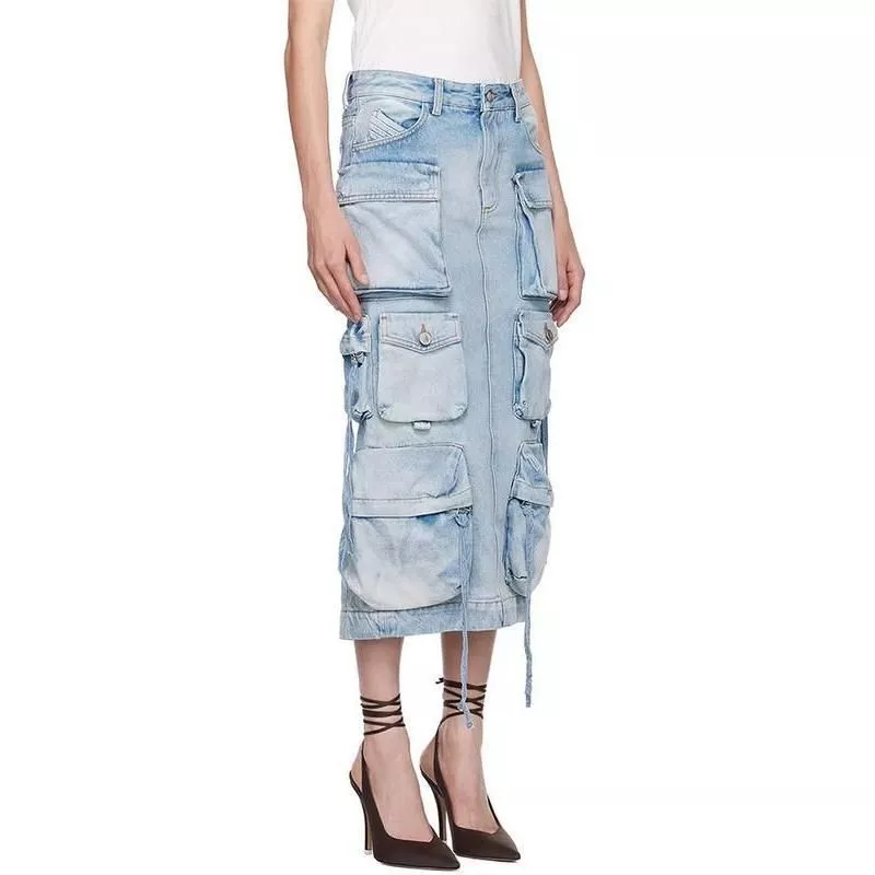 Introducing the perfect blend of fashion-forward design and classic comfort – our High Waist Denim Skirt with Distressed Detail and Ribbon Slit. Ideal for the style-conscious woman, this skirt is a must-have addition to your wardrobe for Spring 2024. Crafted for the modern trendsetter, it seamlessly combines utility and style.