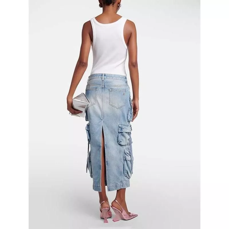 What sets this skirt apart is its unique blend of style and practicality. The high waist and straight silhouette offer a timeless look, while the distressed ribbon slit adds a contemporary edge. It’s not just a piece of clothing; it’s a statement of your personal style.