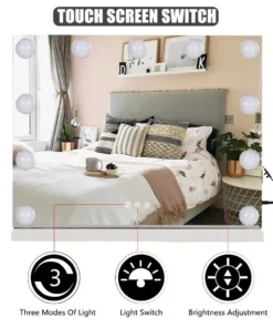 Enhance your makeup and skincare routine with the ultimate Hollywood LED Touch Screen Vanity Mirror, designed to bring professional lighting into your home. This modern, frameless mirror, equipped with 13 energy-saving LED bulbs, offers a blend of elegance and functionality, making it a perfect addition to any bathroom or dressing table.