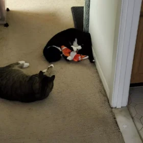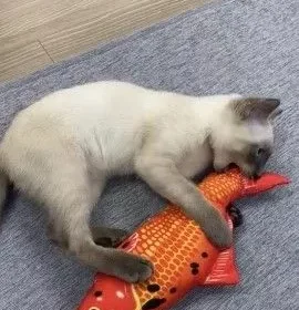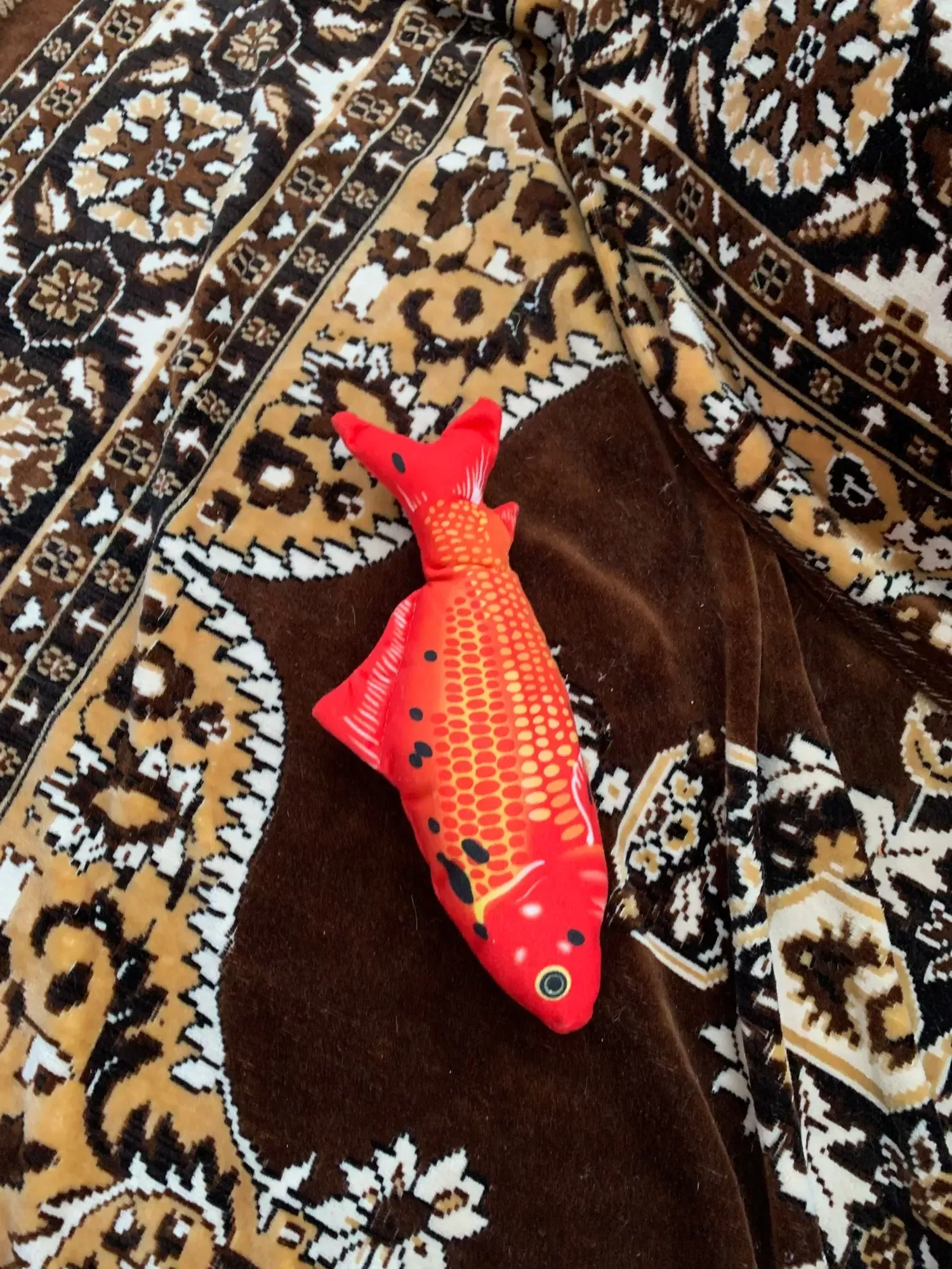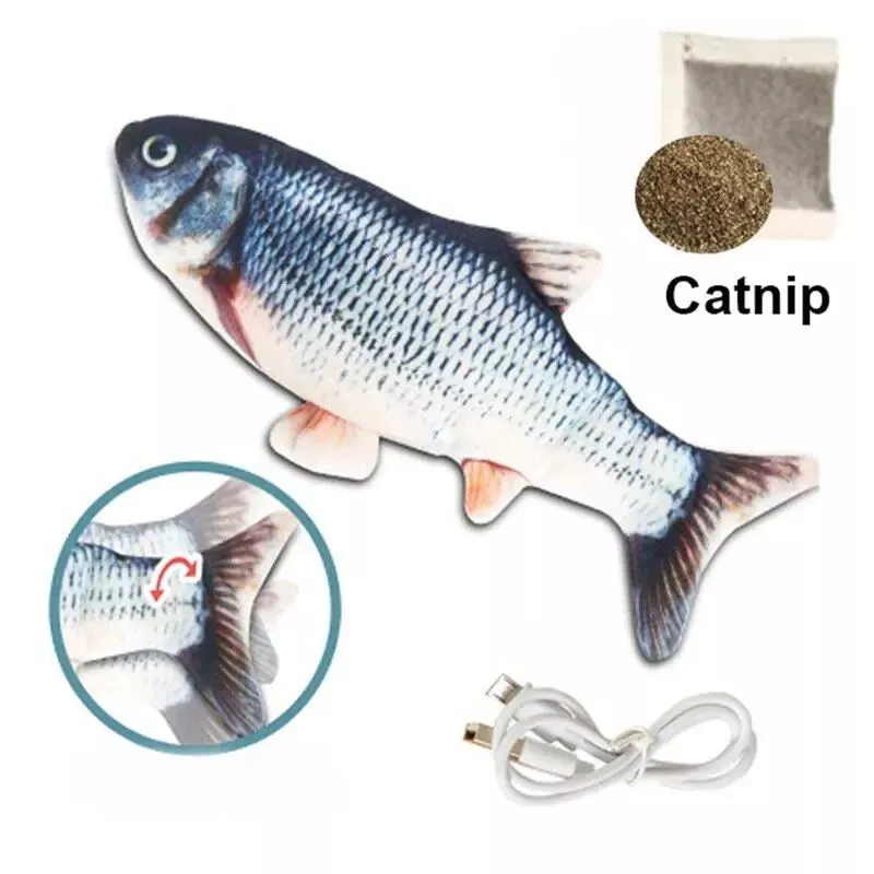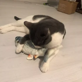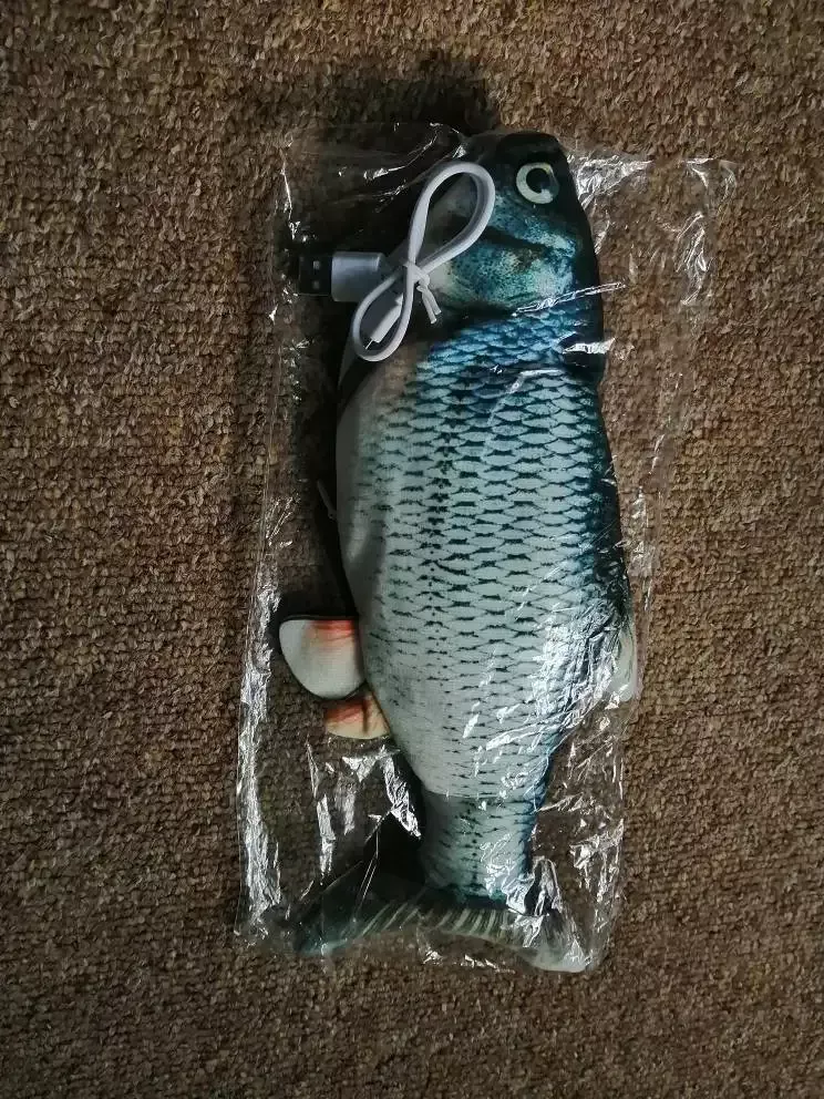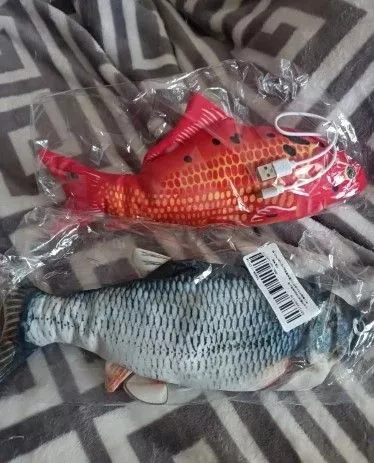 I have two cats. One plays with any toy I buy, turning all sorts of things like straws, plastic spoons, ribbons, etc., into toys. The other doesn’t play with anything. I took a chance on the electric floppy fish cat toy. She stared at it at first, then pounced on it and wouldn’t let go. She carries it around and won’t let our other cat have it. I’m glad she finally found a toy she really likes and keeps her busy.
