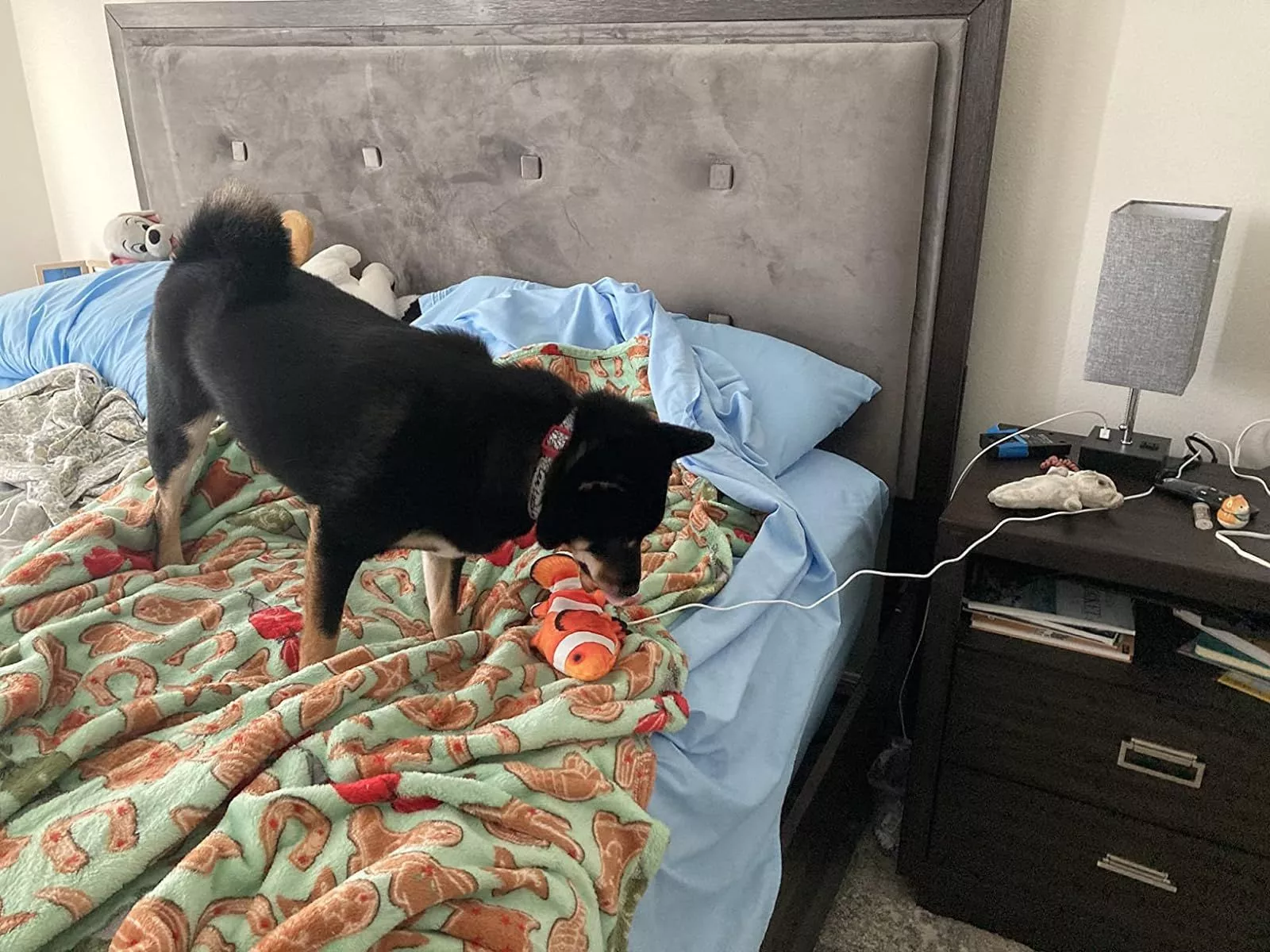 Bought this for our 1-year-old Shiba, and he loves it. He plays with it all day, on and off, and loves to carry it around the house. He puts it in the windowsill, on the couch, in his bed. The battery lasts a long time too; it can go days without charging. Our Shiba loves it so much he’ll try to take it off the charger if we don’t put it high enough out of reach. 10/10 recommend!