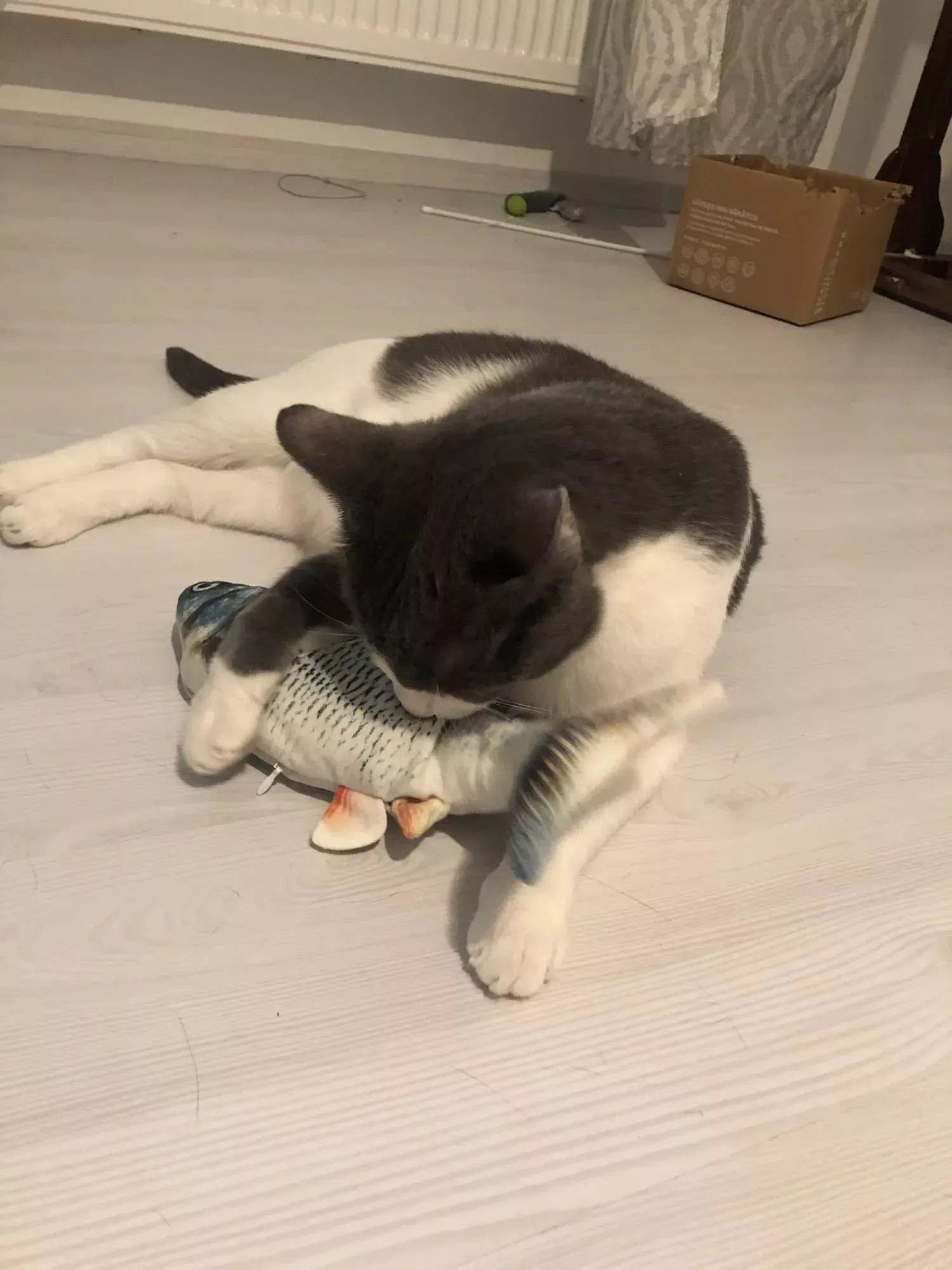 This is the second ‘floppity fish’ I’ve bought. The cats are obsessed with it!