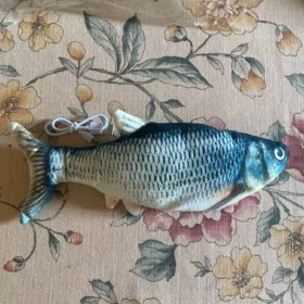 The plush part seems professionally made, including the zipper. The printed design looks like a real fish, and the realistic flopping action is quite lifelike. It flops for 10-15 seconds when tapped, kicked, or dropped, then stops until it’s nudged again. There’s an on-off switch for when it’s not in use. I love that it’s USB rechargeable, no need for batteries.