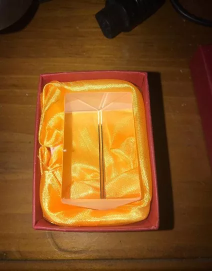 This prism has a substantial feel to it and works exceptionally well. It came in a beautifully packaged box with a styrofoam insert wrapped in a soft cloth material, which can also be used for safe storage. It would make a lovely gift box as well.