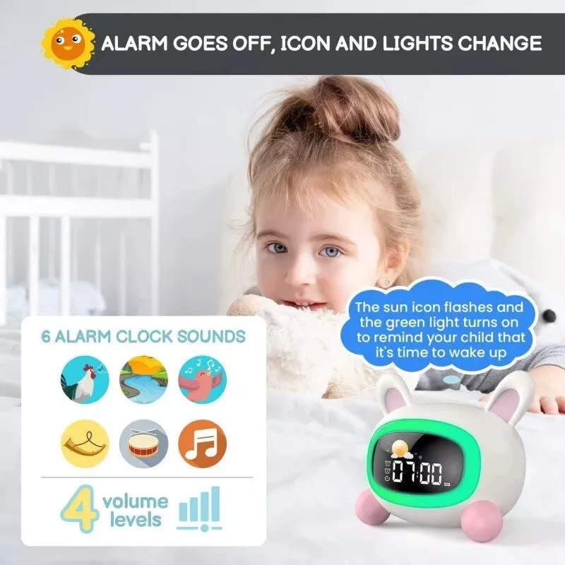 This alarm clock stands out with its combination of functionality, style, and child-friendly design. It’s not just an alarm clock; it’s a sleep trainer, a night light, and a sound machine, all rolled into one adorable package.