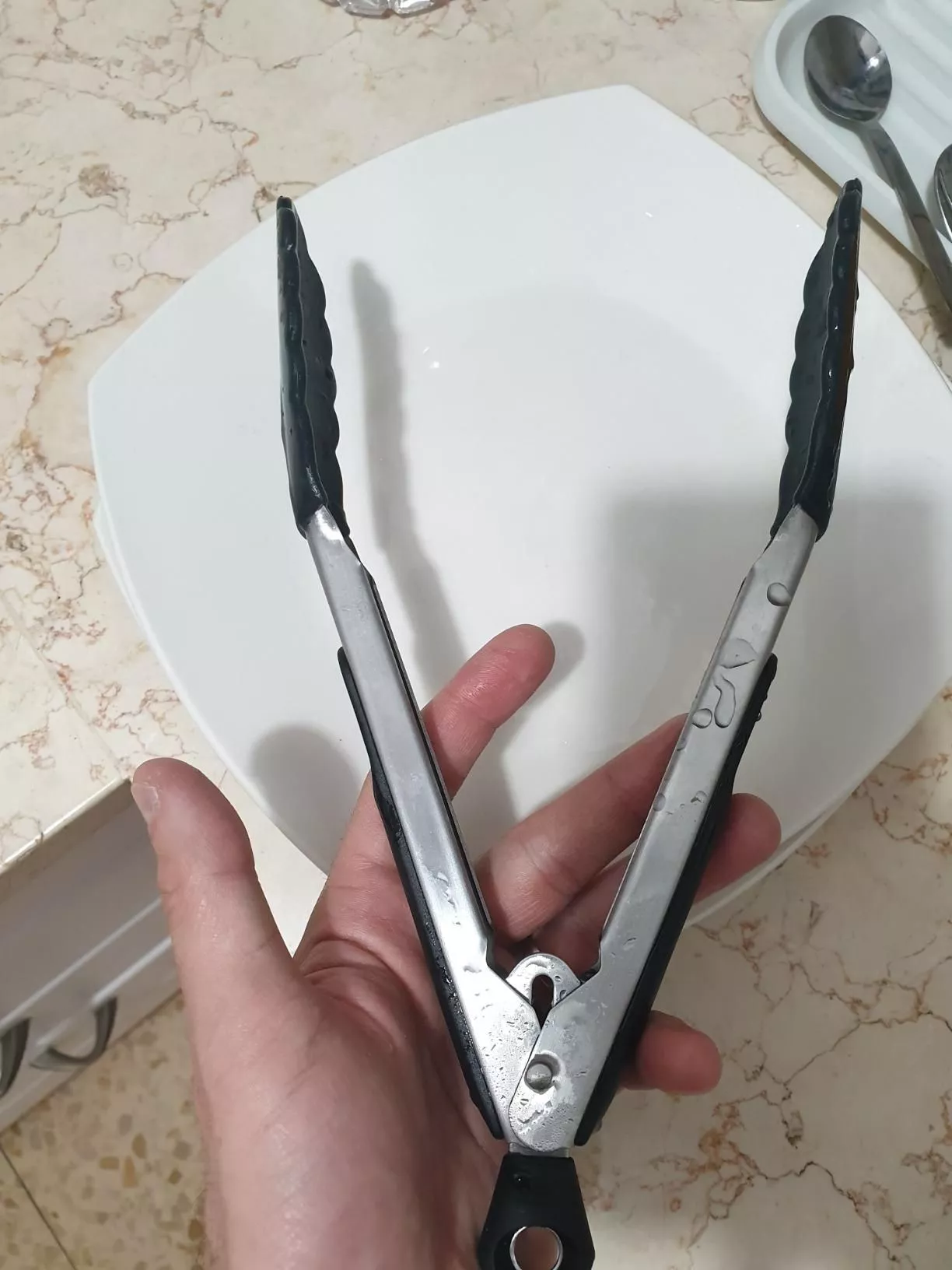 Can’t believe I managed without these tongs before. They grip well and are perfect for coated pots.