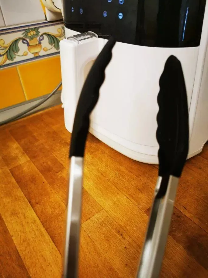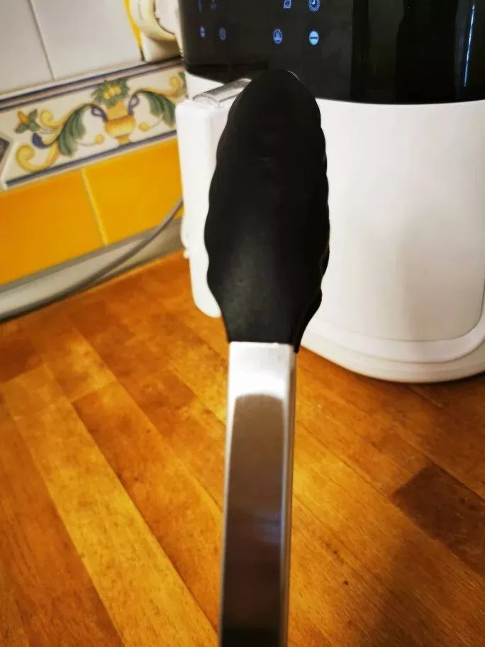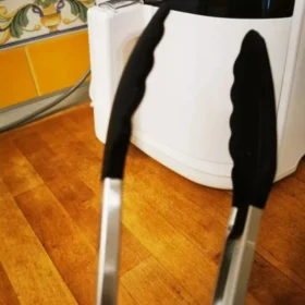 I got these tongs for my air fryer because of the silicon tips. They’re gentle on non-stick surfaces and super easy to clean. Plus, the locking feature is handy for saving drawer space.