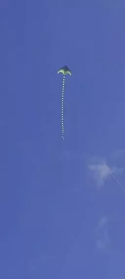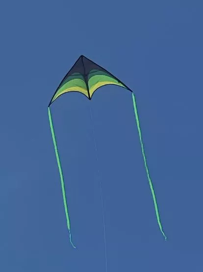 I keep this kite in my knapsack and bring it out for my grandchildren. These delta kites are simple to fly but lack the nostalgic satisfaction of the homemade ones from my childhood. The quality is reasonably good, and the string is sturdy but a bit short. I appreciate the swivel tackle where the string attaches to the kite.