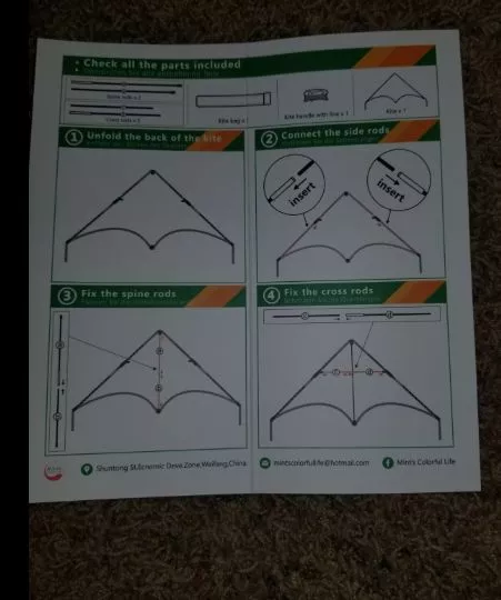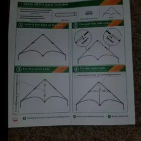 The instructions provided with the kite could be improved, but considering it’s a kite, it wasn’t challenging to figure out. The key is to ensure that the correct-length pieces are oriented in the right direction. The string should be attached to the opposite side from where you insert the rods, and it’s connected with a fishing swivel hook.