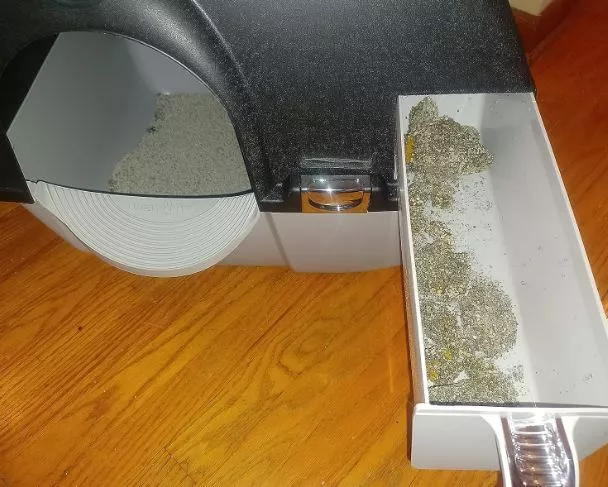 No more spills or crumbs from scooping, and the drawer easily slides out to dump everything in just about 2 minutes, from start to finish. Even with two cats, I do it once a day, and there’s absolutely no odor or mess.