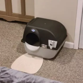 The engineering behind this product is great for humans to use and clean the kitty’s restroom, not to mention that my cat had no issues using it from day one. We placed a large mat underneath to catch any litter and clean the cat’s paws.