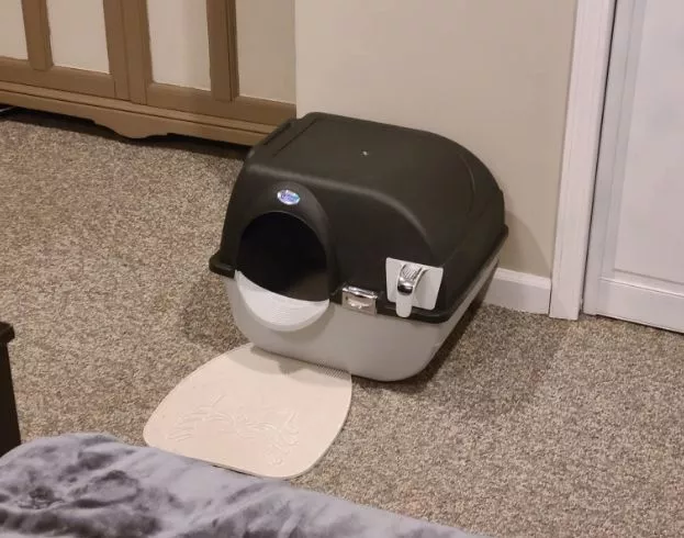 Even before putting it together, my cat showed interest. It has been a hit so far – very convenient with no litter spray on the carpet. Cleaning is a breeze, and I’m absolutely thrilled with it. Plus, the color is fantastic!
