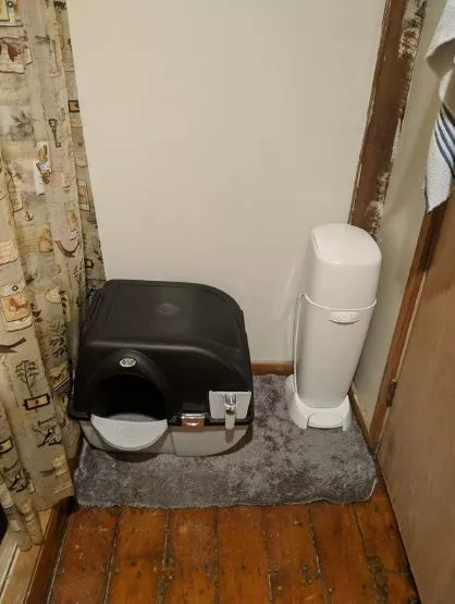 This litter box is fantastic – no more hand scooping litter! I now have two of them, and I would definitely recommend them.