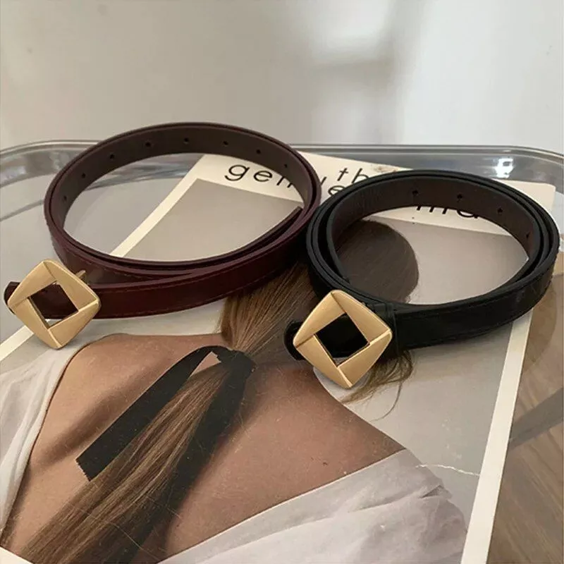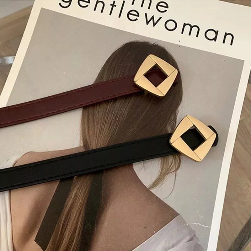 Add a touch of sophistication to your ensemble with this elegantly designed Fashion Leather Thin Belt for Women. Its sleek design is accentuated with a chic metal rhombus buckle that serves as a stunning centerpiece. Crafted from premium leather, this belt offers a blend of durability and a luxe feel, making it an essential accessory for every fashion-conscious woman.