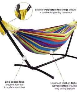 Don’t miss out on transforming your outdoor or indoor spaces into a sanctuary of tranquility and comfort. Our Luxurious Double Hammock is waiting to become your new favorite spot for relaxation and enjoyment. Order now and start experiencing the ultimate in comfort and style!