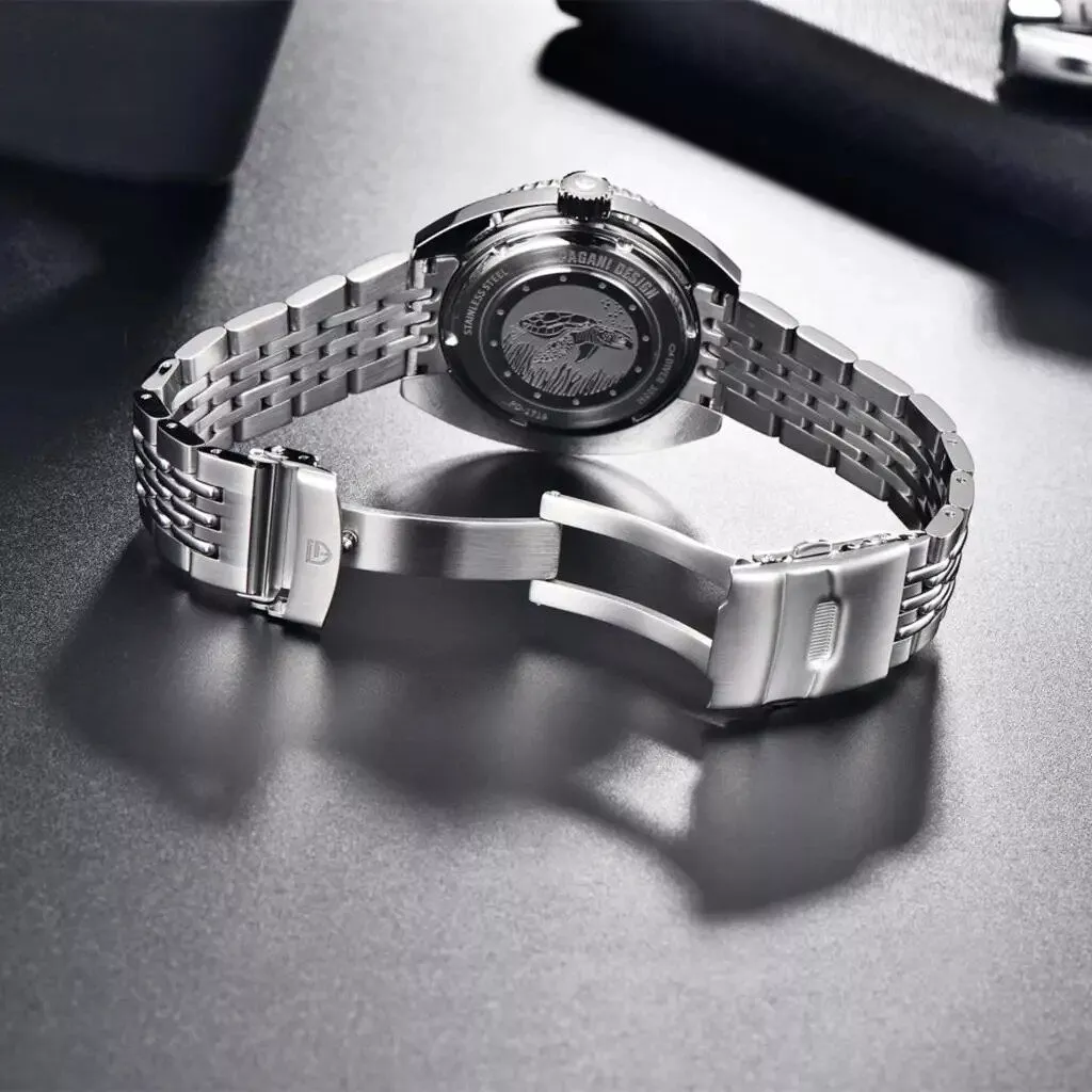 At the heart of this watch lies the Japan NH38A Mechanical Movement, renowned for its reliability and precision. Encased in a durable 316L stainless steel case, the watch boasts a unique triangle shape and a striking 42.7mm dial diameter. The sapphire crystal dial window ensures scratch resistance and clarity, while the luminous hands and markers offer visibility in low light conditions. The 300m water resistance makes it perfect for diving and water sports, without compromising on style or functionality.