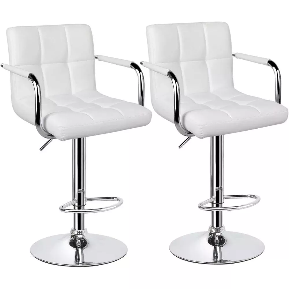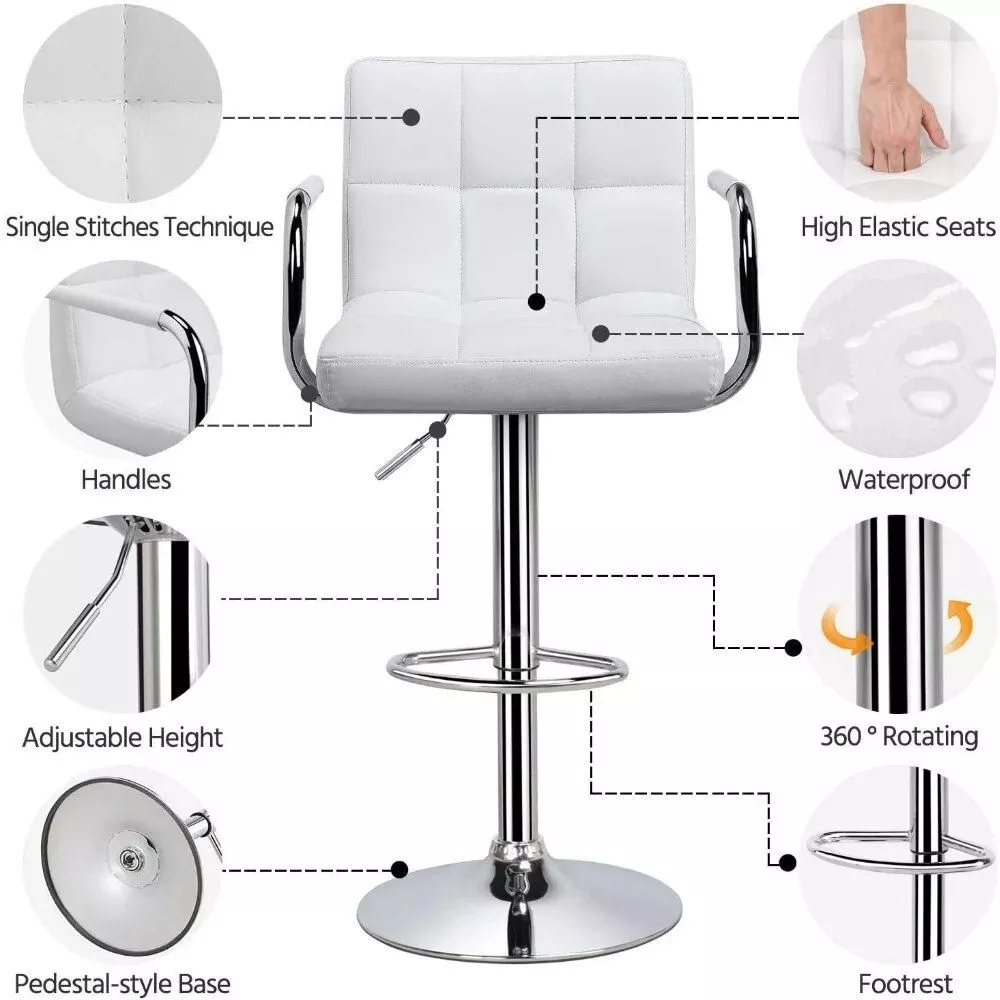 - Stylish Design: Boasting glossy metallic legs and a faux leather seat, these stools add a touch of elegance and sophistication to any space, perfectly complementing kitchen counters, bars, pubs, and cafes.