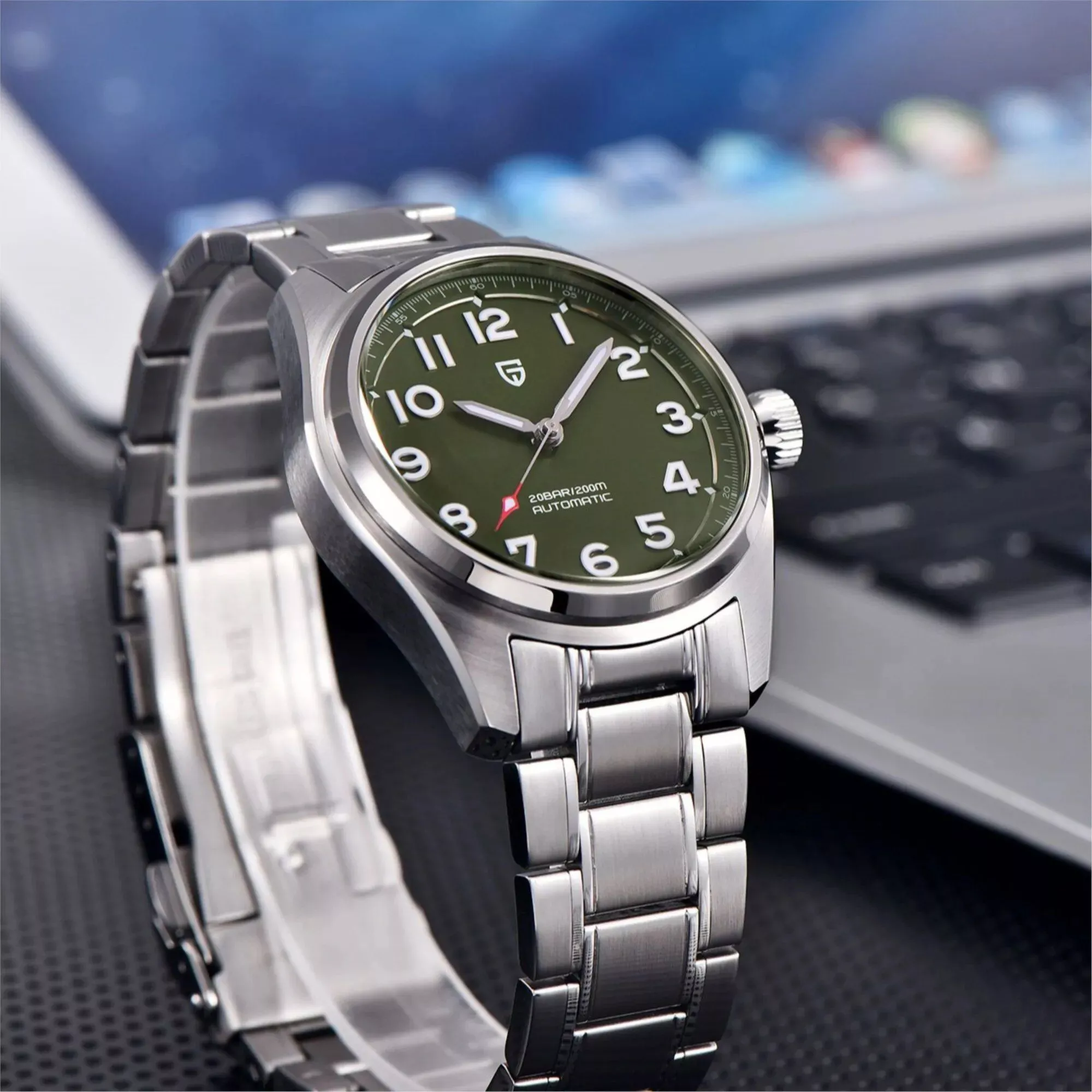 Designed for the man on the go, this watch is water-resistant up to 200 meters, making it ideal for swimming and underwater activities. The robust stainless steel bracelet and secure folding clasp ensure your watch stays firmly in place, no matter where your adventures take you.