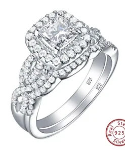 Gift this stunning Princess Cut 925 Sterling Silver Engagement & Wedding Ring Set to the special woman in your life or treat yourself to its timeless elegance. With a 180-day money-back guarantee and a luxury gift box included, it’s an unforgettable way to celebrate love and commitment. Experience the perfect blend of affordability, quality, and beauty. Add to cart now and let your love shine!