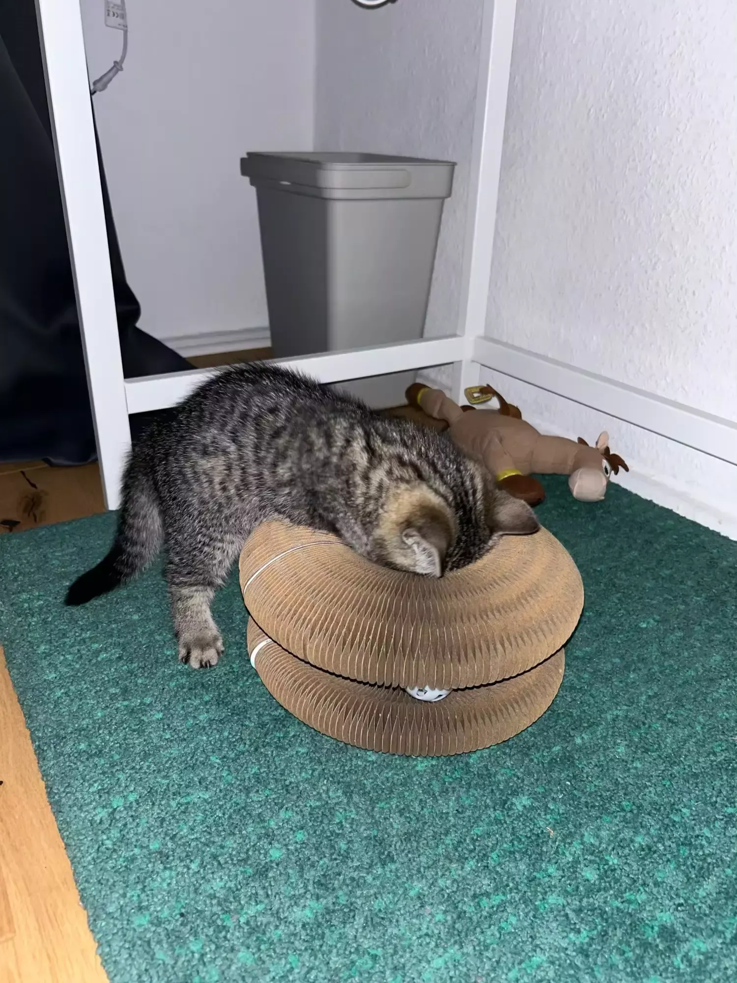 our kitty loves his new scratch board. even more so because of the added bell toy which keeps him entertained for hours on end. 🐾🔔
