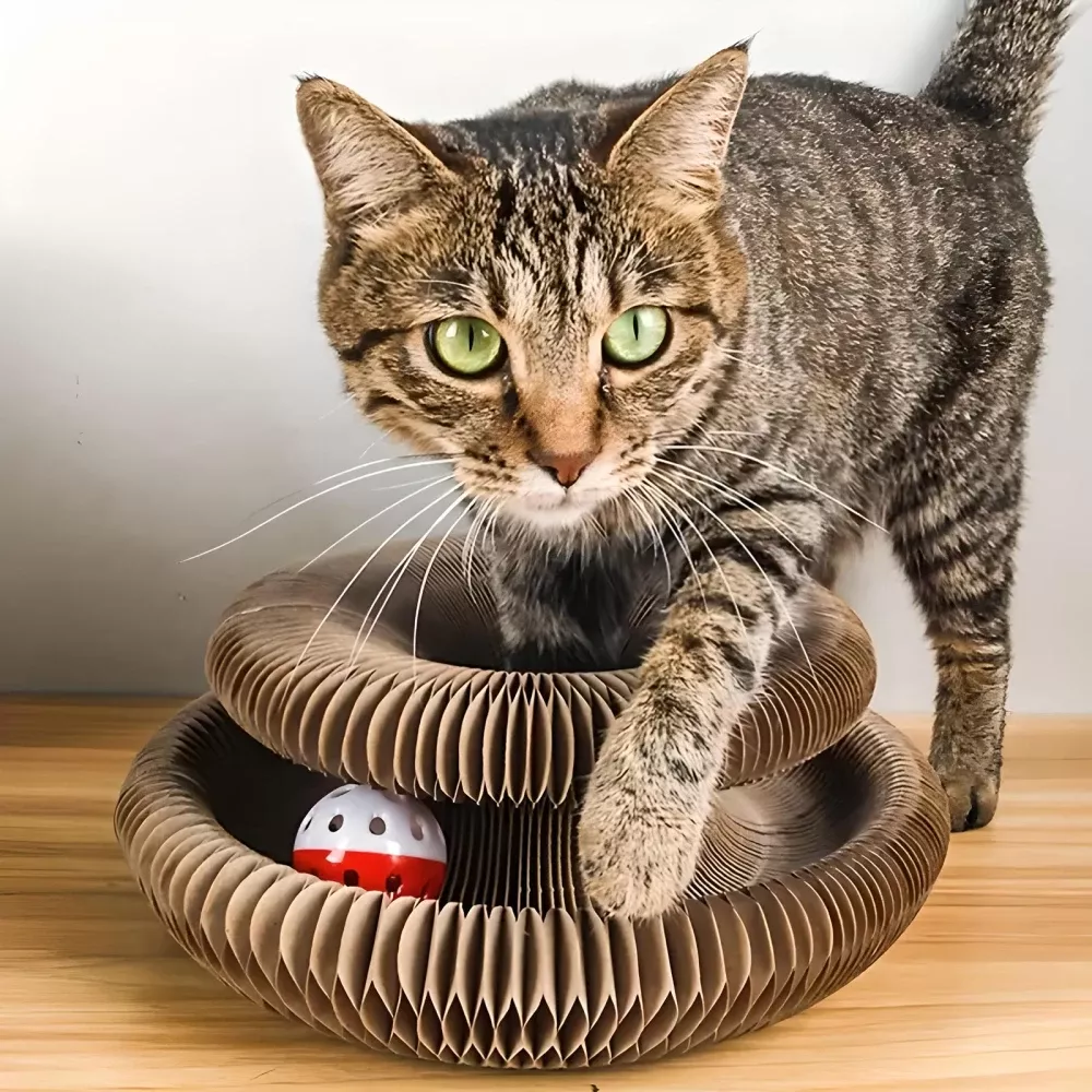 This scratch board is amazing! My cat loves the bell toy and it’s super durable. Definitely a great buy!